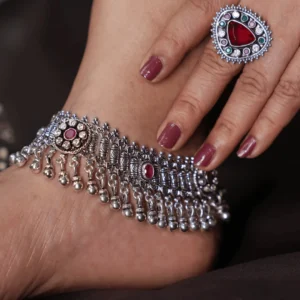 Antique Silver Kada Payal for Women’s with Layered Ghungroos