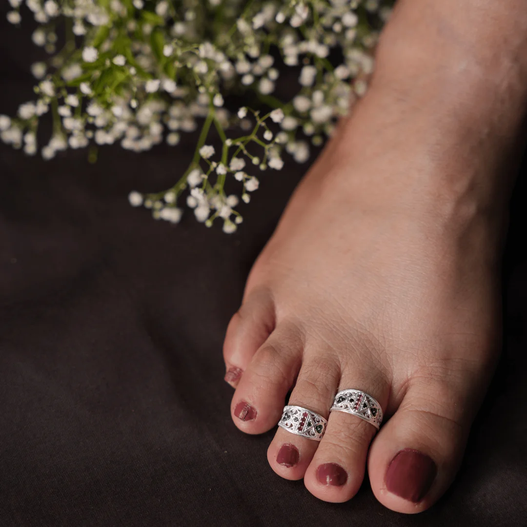 These toe rings are inspired by the lotus flower, representing purity and grace. The petals are finely engraved on a round band, and the lightweight design ensures daily comfort with traditional charm.